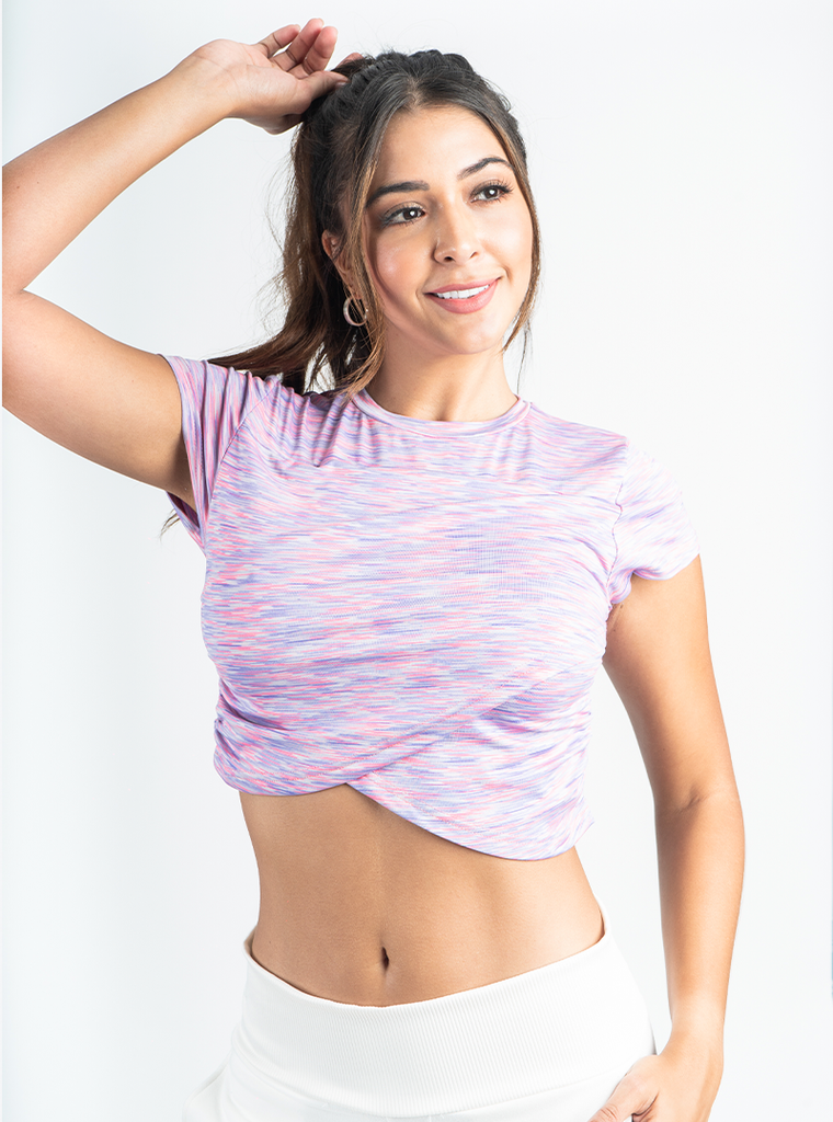 La silueta recortada y entallada, el dulce detalle cruzado en la parte delantera hace este crop top el perfecto para el gym o para un estilo casual para salir.
